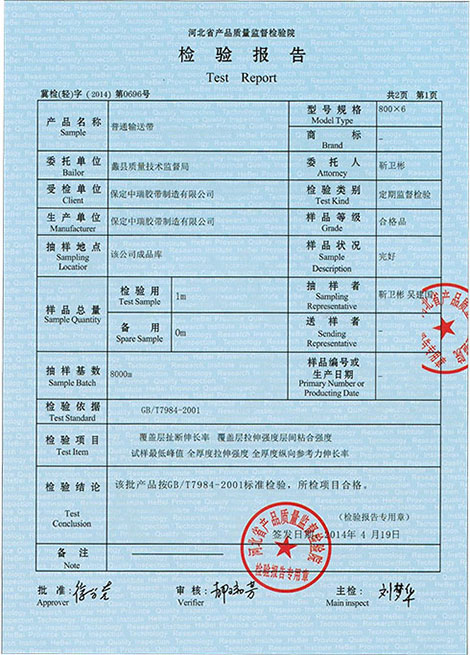 耐热输送带检验报告