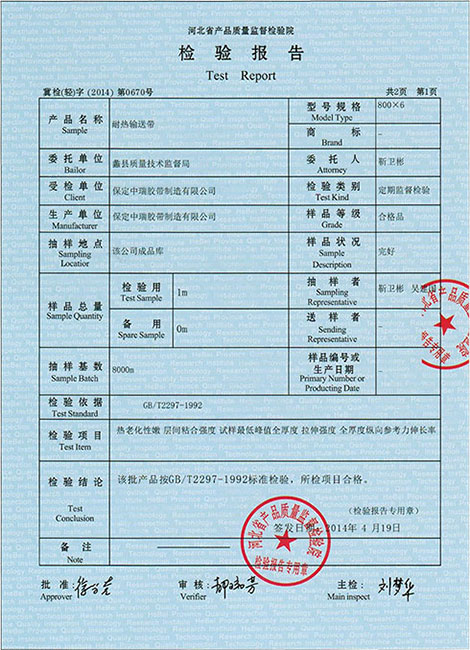 耐热输送带检验报告